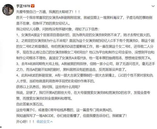 娱乐圈的爆料,就像是一面镜子,照出了人性的善恶。这些事件让我们看到了娱乐圈的黑暗面,也让我们更加珍惜那些坚守初心的明星。希望娱乐圈能够越来越规范,让更多人享受到美好的艺术作品。而对于这些爆料,我们只能静观其变,等待真相大白的那一天。